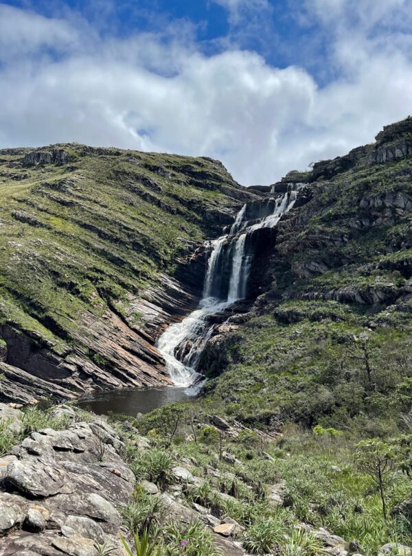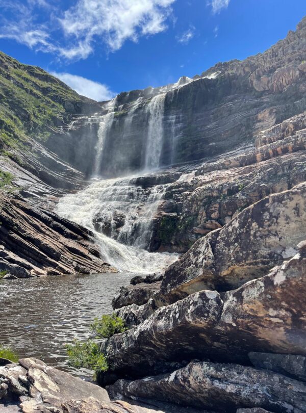 Explore uma das cachoeiras mais belas da Serra do Cipó, com duas quedas d’água impressionantes e poços ideais para banho em meio à natureza exuberante.